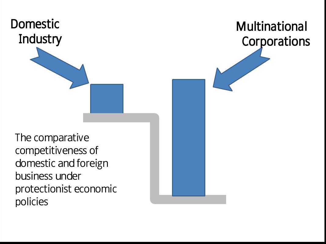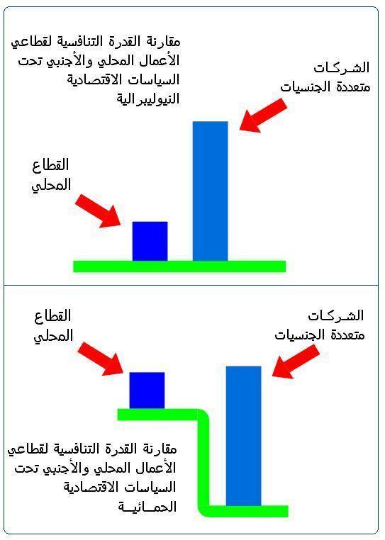 إن مفهوم “تكافؤ الفرص” الذي ينادي به الليبراليون الجدد، ويفترض أن يهدف إلى ضمان عدم وجود “ميزة غير عادلة” لدى الشركة في أي سوق، هو يهدف في الواقع إلى الحفاظ على التميز النسبي للشركات متعددة الجنسيات الضخمة لتمكينها من السيطرة على الأسواق المحلية تماما. حيث أدان “الحمائية” السياسات الإقتصادية رسميا من أجل إعطاء “مزايا غير…